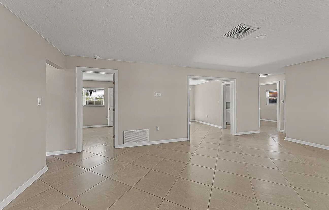 Featuring a neutral palette, 20” tile flooring, and a modern kitchen with granite countertops, stainless steel appliances, and subway tile backsplash, the home also includes recent upgrades such as a 2020 roof, new hurricane-rated garage door, hot water heater, updated A/C ductwork, re-plumbed water lines, and fresh paint.