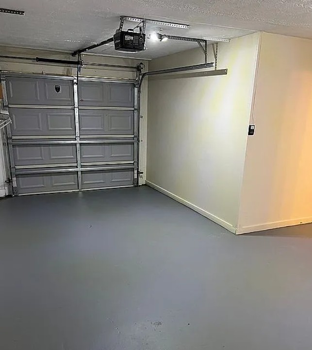 Enjoy a fully equipped laundry room with hanging space, a dedicated workshop area, and a one-car garage with ample shelving.