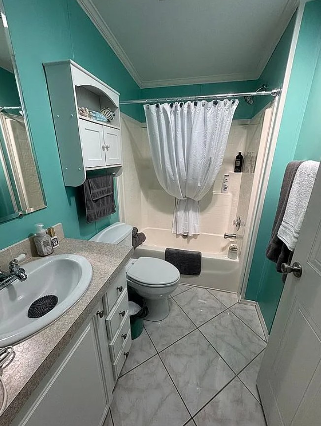 This home is fully furnished (excluding the primary bed) and comes with a golf cart included.