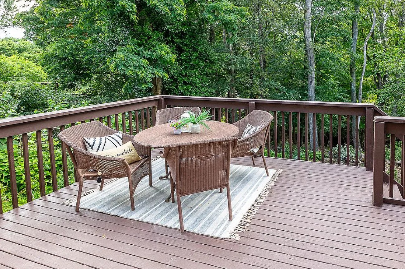 Enjoy outdoor living on the expansive back deck overlooking a serene, private wooded backyard—ideal for relaxing or entertaining.