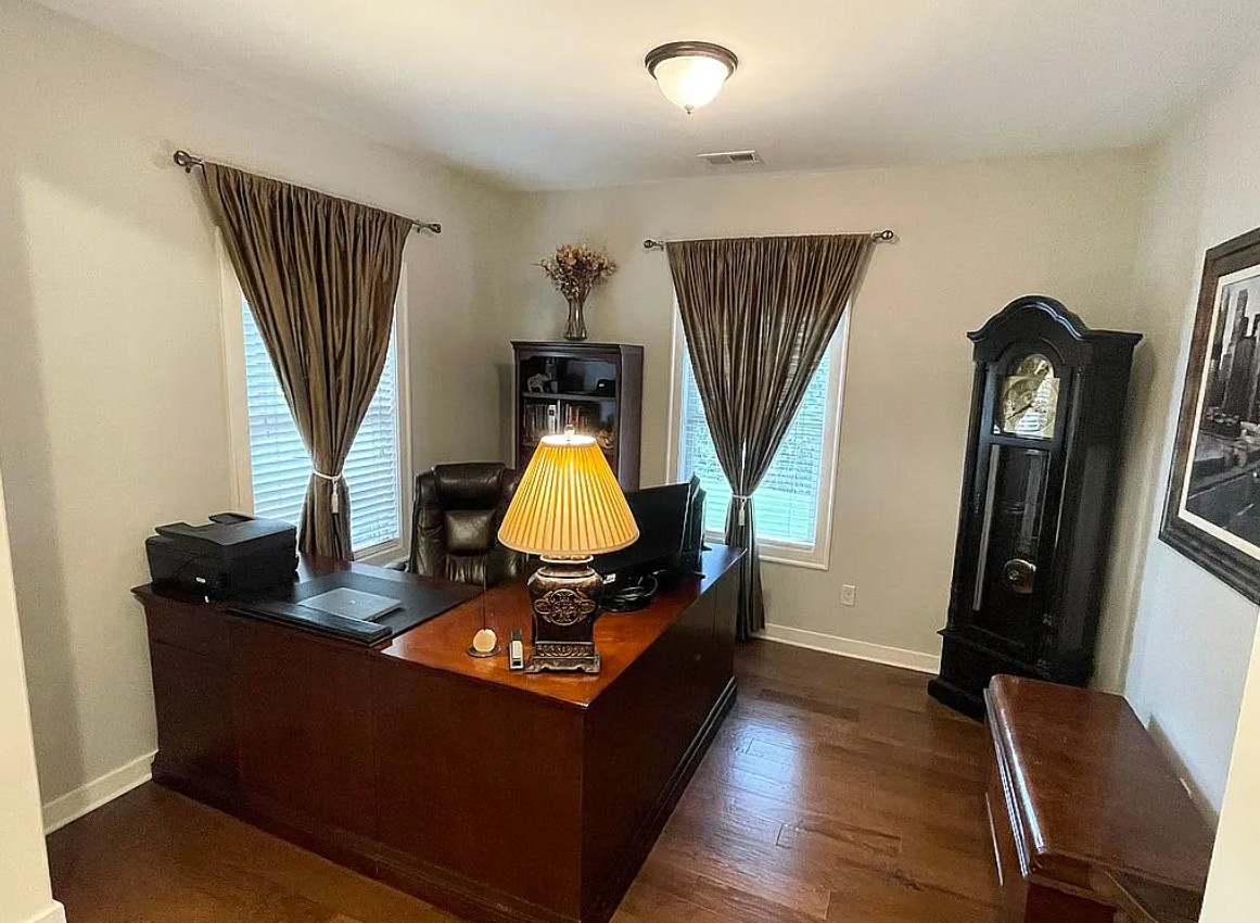 Spacious home office and a large laundry room with ample built-in storage