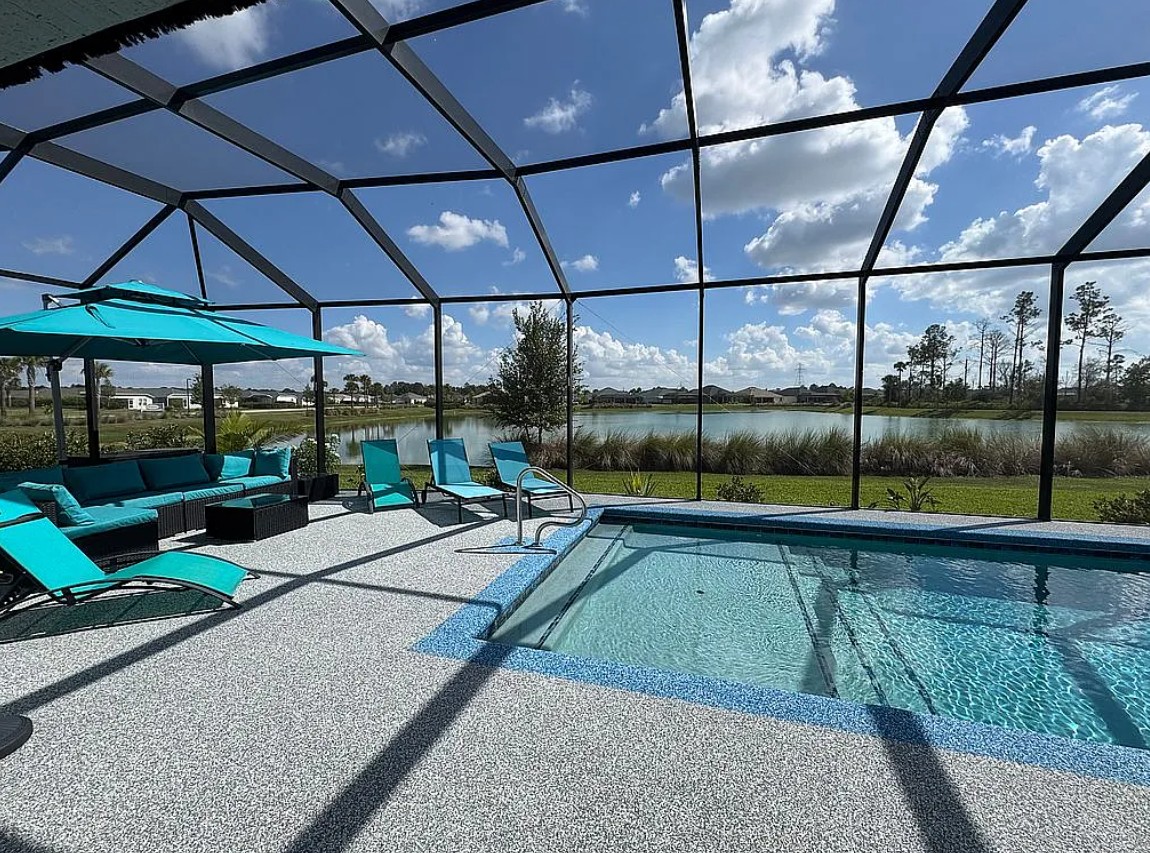 Enjoy relaxing by the heated pool and spa while taking in peaceful pond views and Florida wildlife from your private backyard oasis.