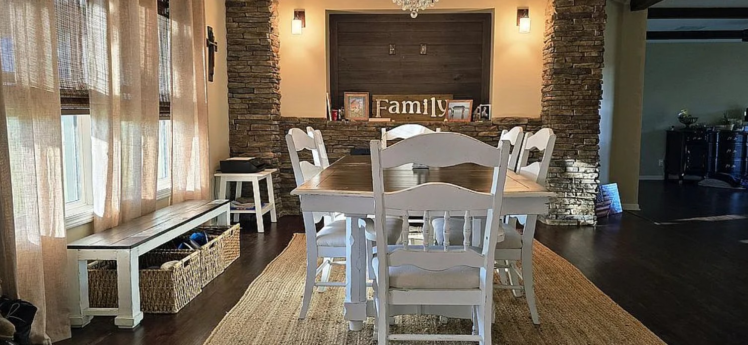 Host memorable dinners in the spacious dining area next to a stunning stone electric fireplace.