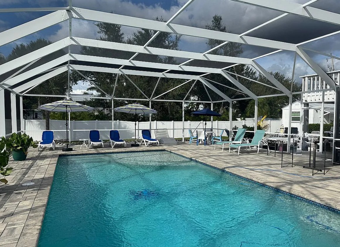 Outdoor living is a dream with a heated 16 foot by 32 foot saltwater pool that’s 7 feet deep, surrounded by an 1,800 square foot screened enclosure perfect for entertaining year-round.