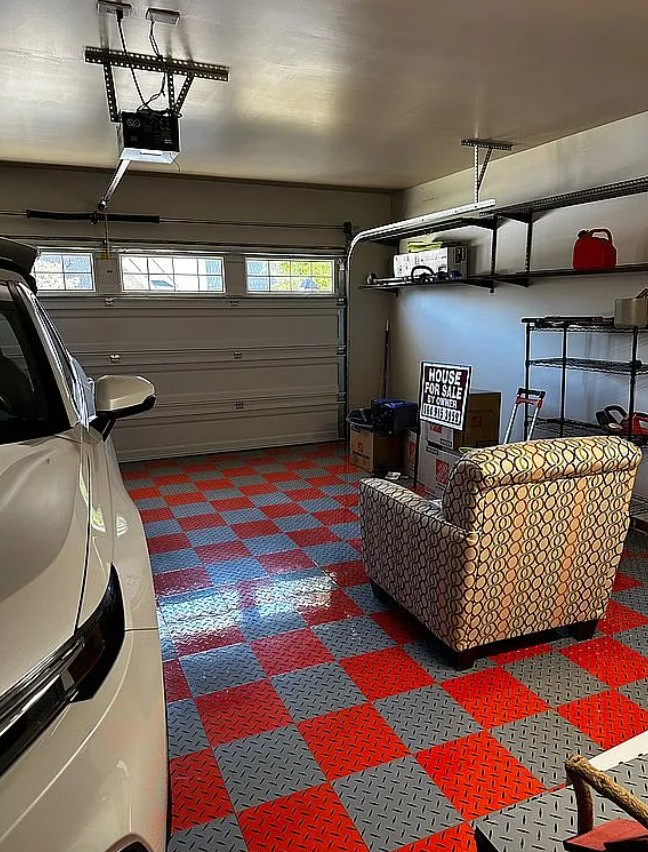 The two-car garage offers covered parking and a poly tile floor for easy maintenance and a polished look.