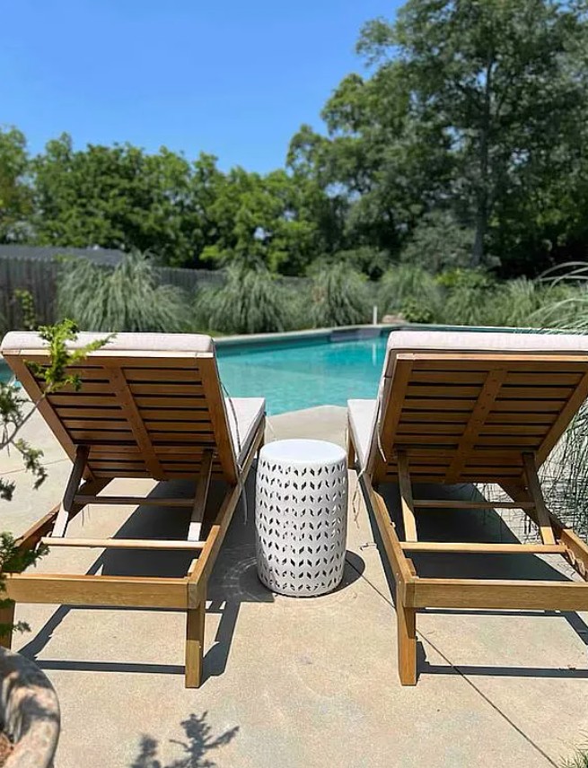 The spacious, fenced backyard offers a large pool deck and outdoor lounging area, creating a resort like atmosphere that few other rentals in the area can match.