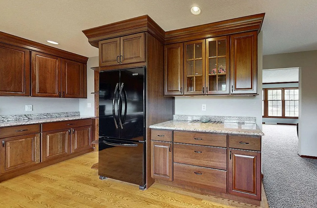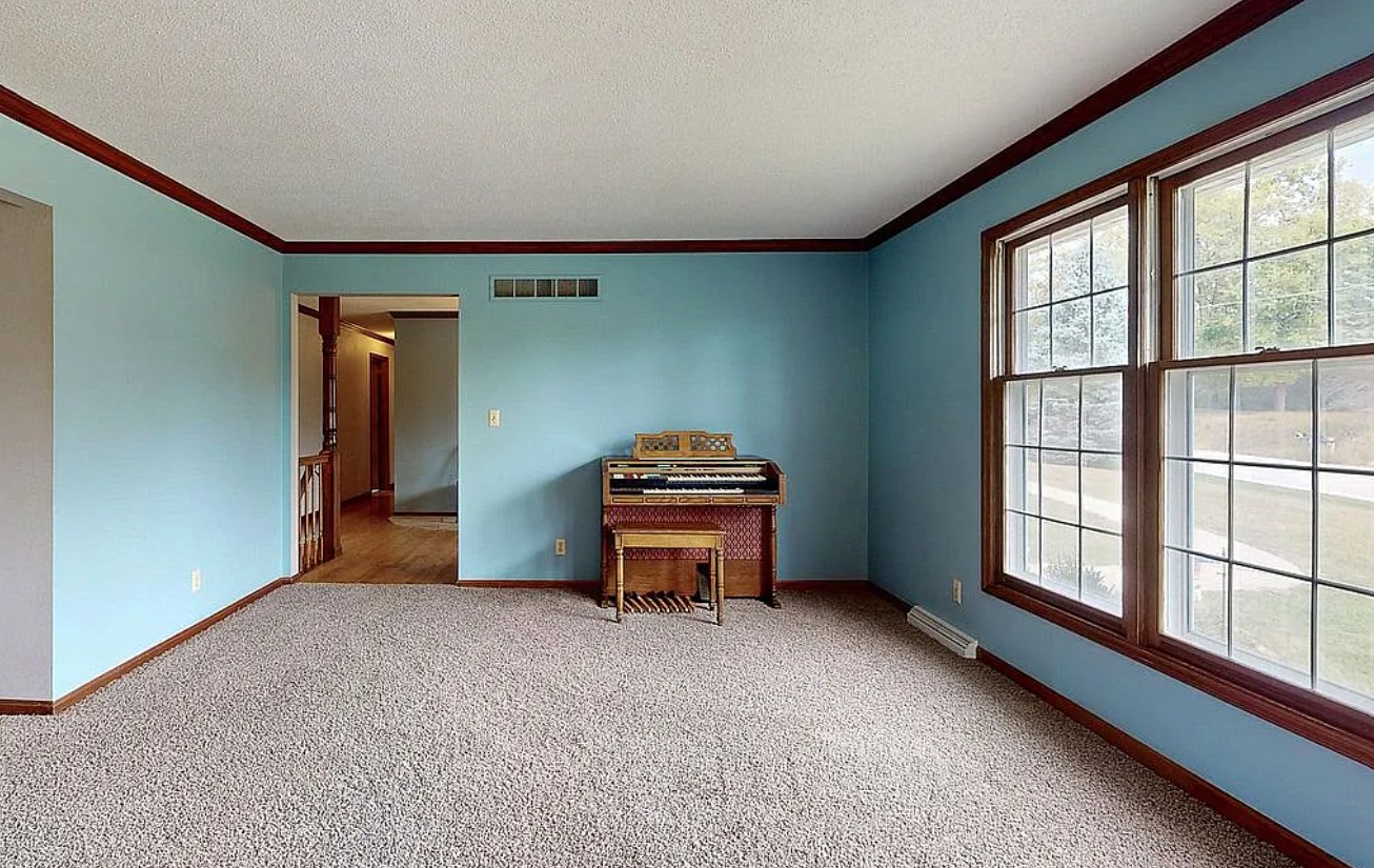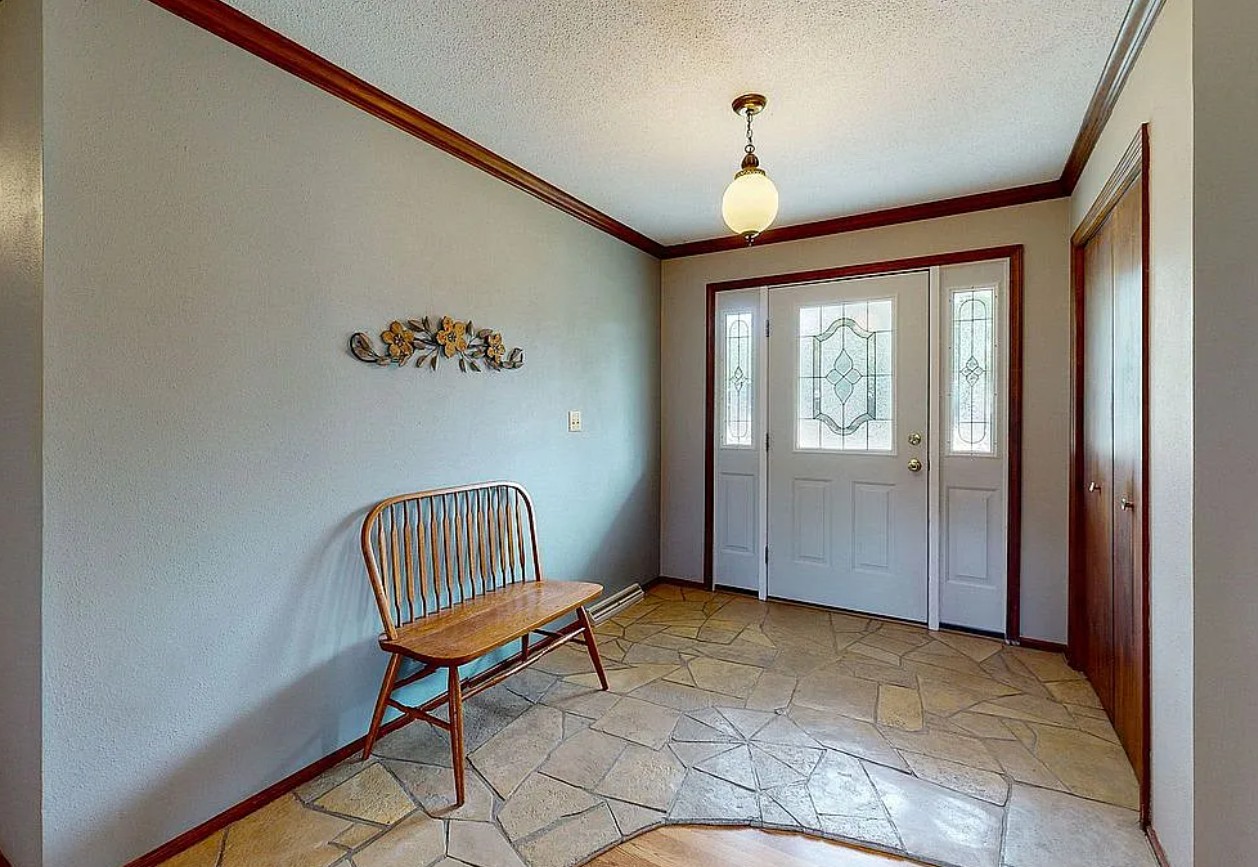 Mix of hardwood, tile, and carpet flooring throughout the home creating a warm, inviting atmosphere