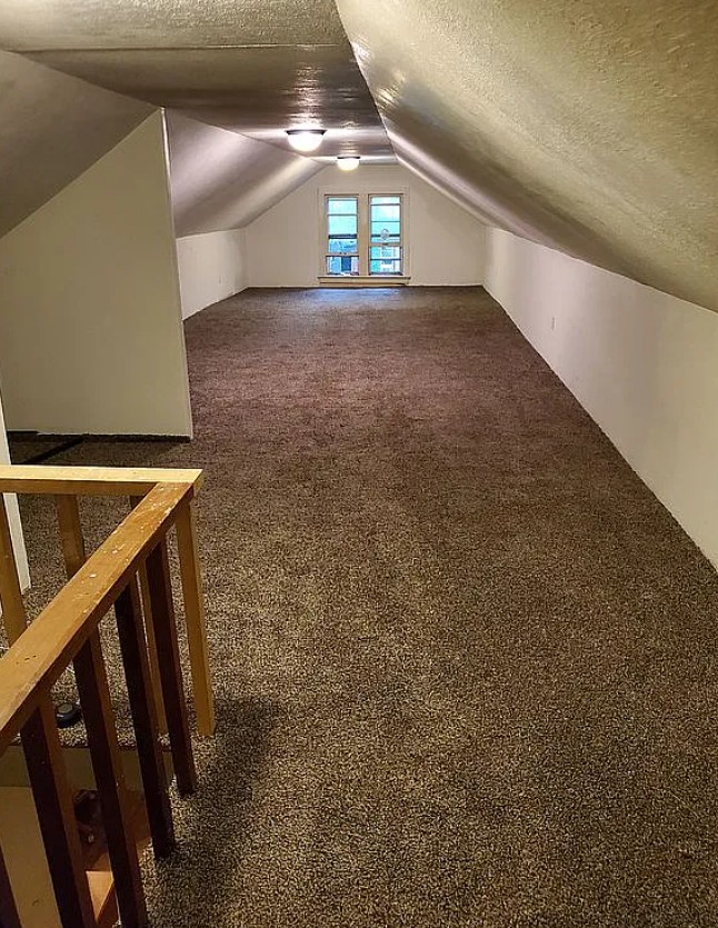 This inviting property features beautiful real wood floors, wide wood trim, and an open loft upstairs, creating a warm and classic atmosphere throughout.