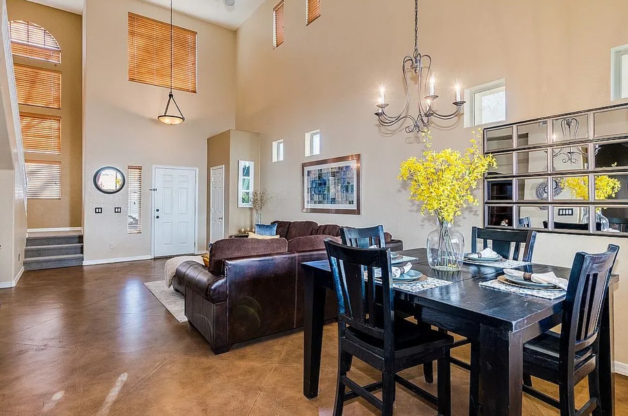 Featuring an open floorplan with soaring high ceilings, this stunning residence blends spacious design with modern elegance.