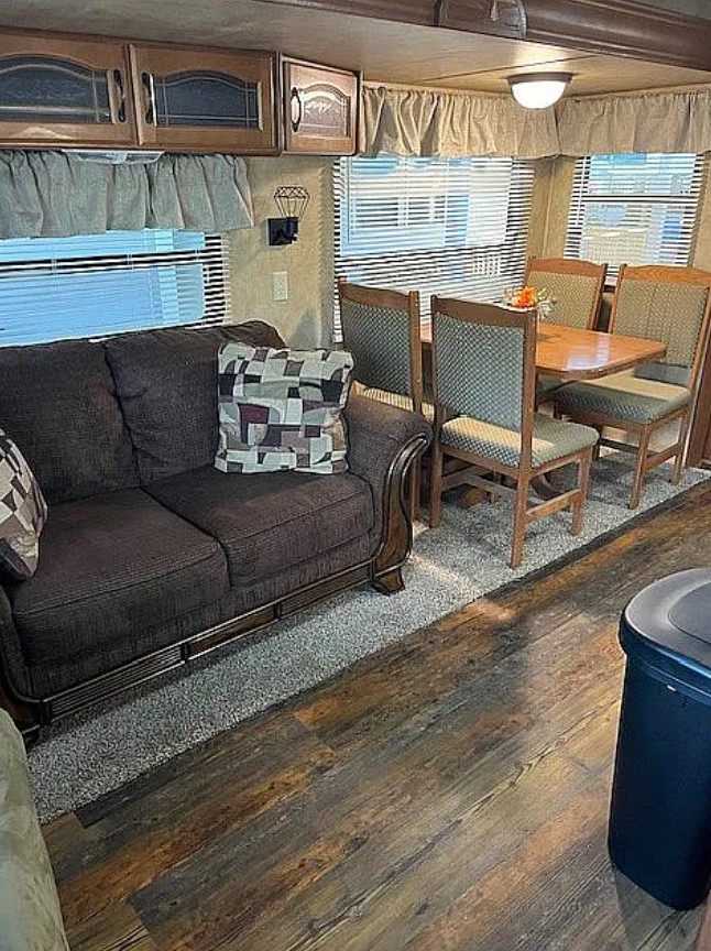 Enjoy peaceful mountain living in this 2017 Keystone Mountaineer located in the desirable Enchanted Valley RV Park in Hiawassee, Georgia.