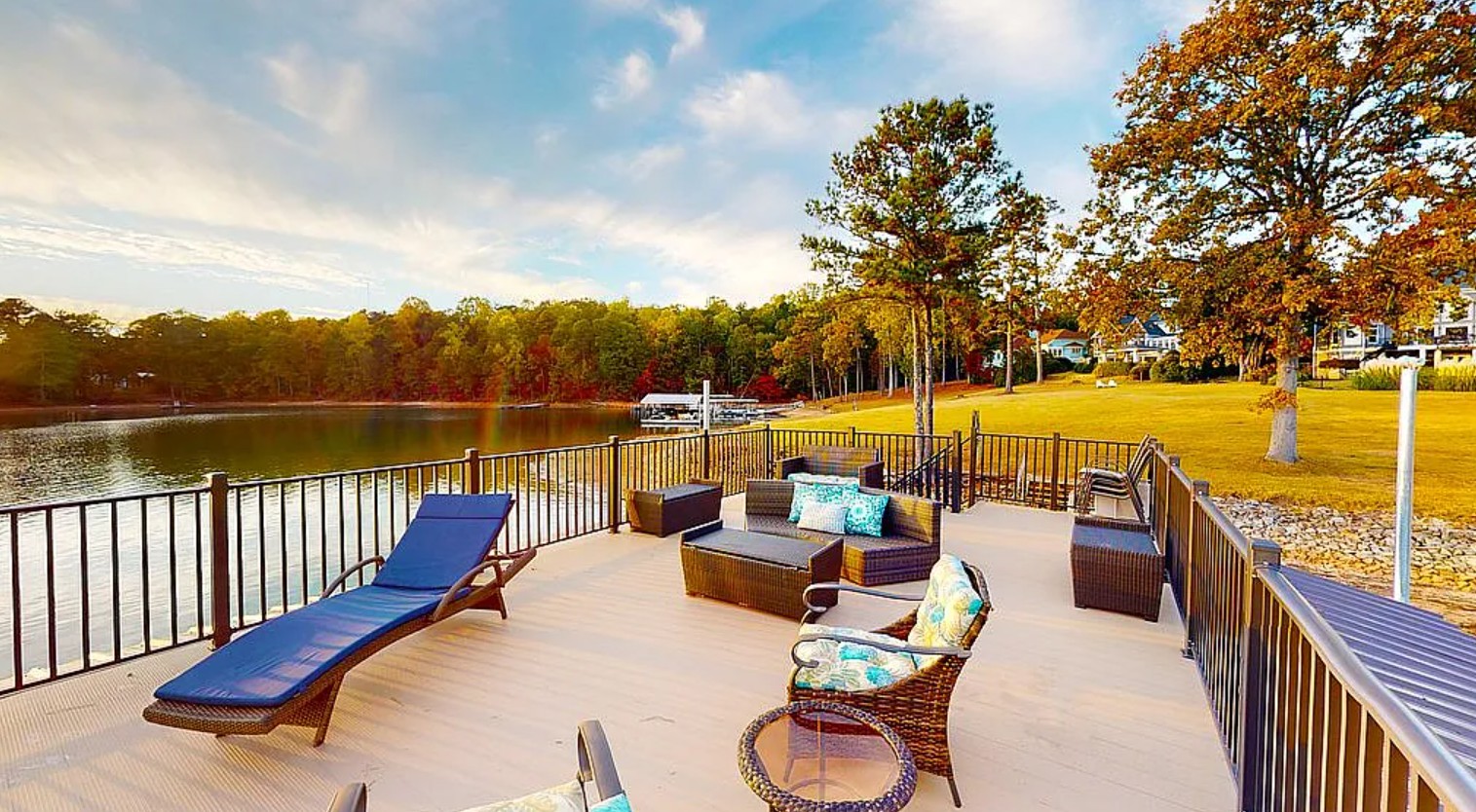 Expansive decks, patios, and lounging areas offer the perfect setting for summer days and sunset evenings overlooking the lake.