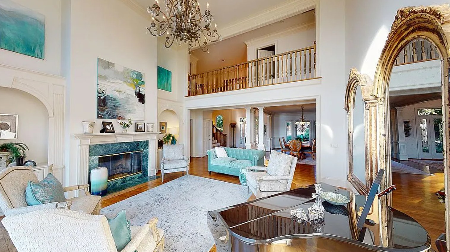 The finished terrace level is an entertainer’s dream, complete with a full kitchen, family room, recreation and billiards rooms, a media theater, gym, ample storage, and an additional single-car garage—complementing the three-car garage on the main level.