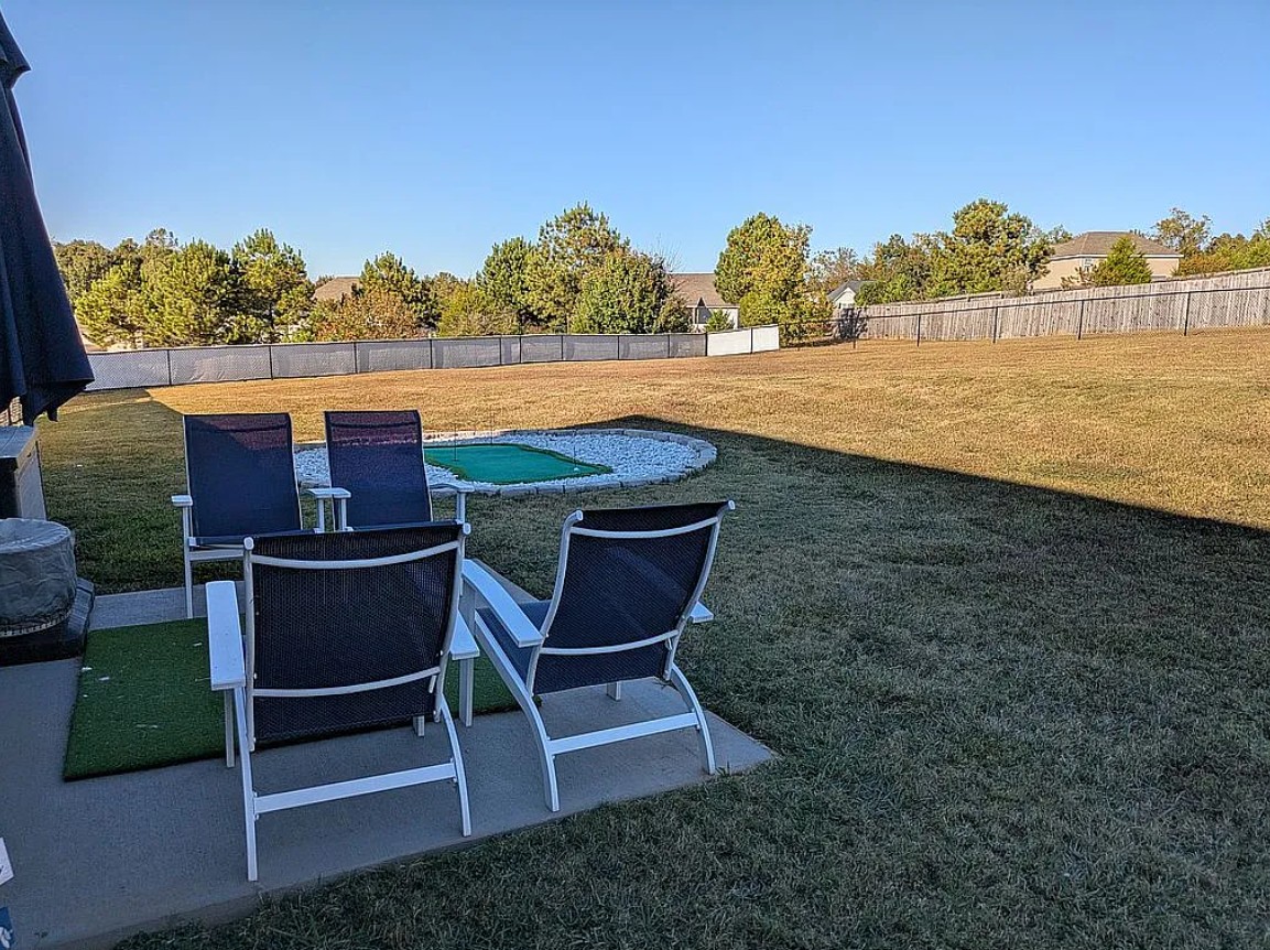 Outside, enjoy your own private oasis with a fenced backyard featuring both a double and single gate, plus a putting green for relaxing or fun weekends at home.