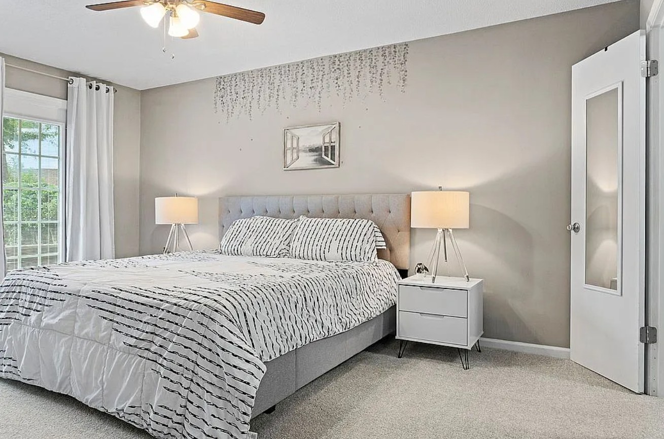 The private primary suite includes an en-suite bathroom and ample closet space.
