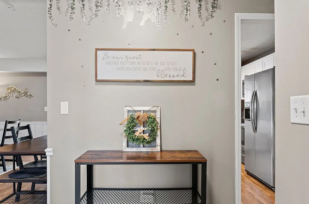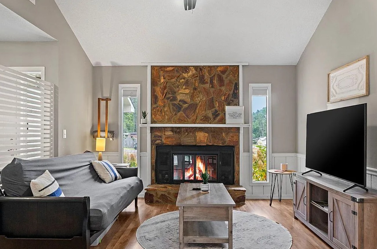 Inside, you’ll find a bright, open floor plan featuring a spacious living room with a wood-burning fireplace, a beautifully updated kitchen with modern appliances, and generous dining and lounging areas designed for everyday comfort and entertaining.