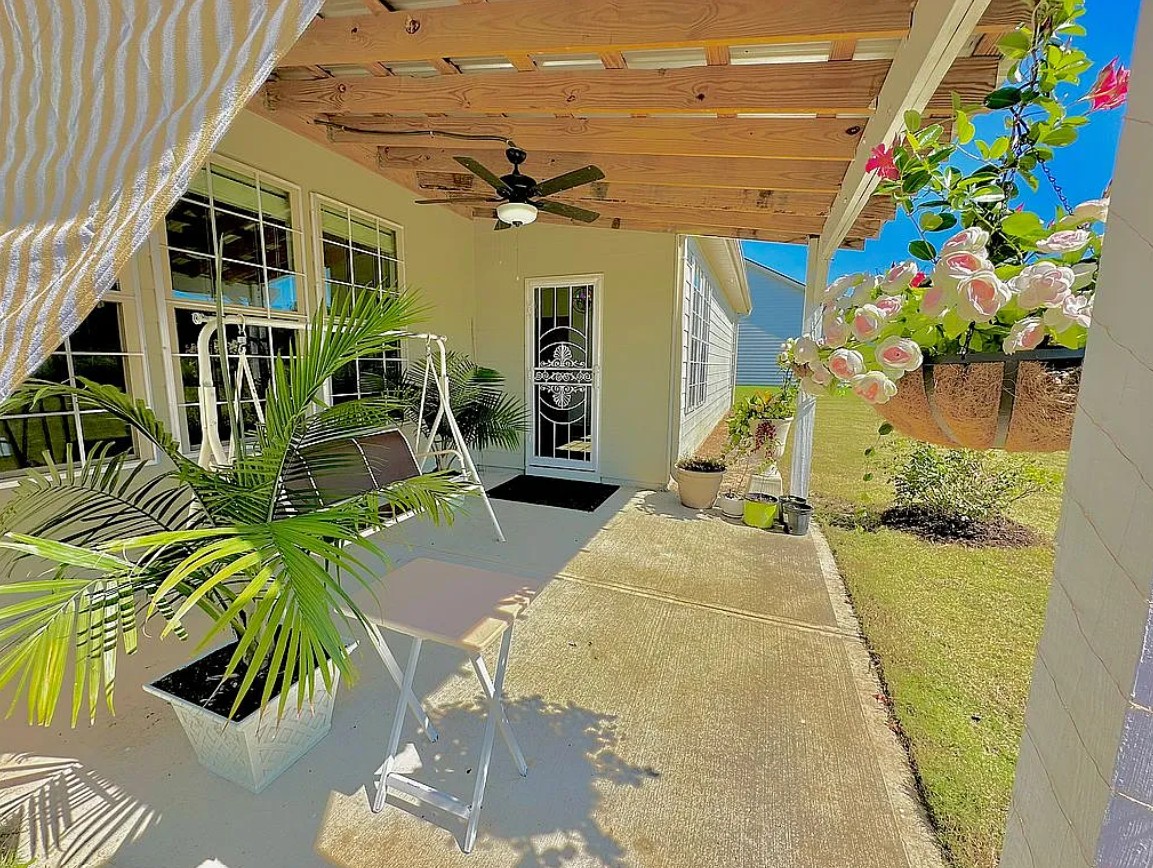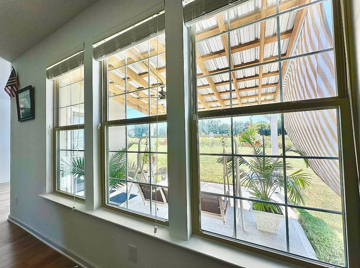 Enjoy your morning coffee in the bright breakfast area overlooking the lush green backyard, or unwind in the covered patio while watching stunning sunsets from the privacy of your own retreat.
