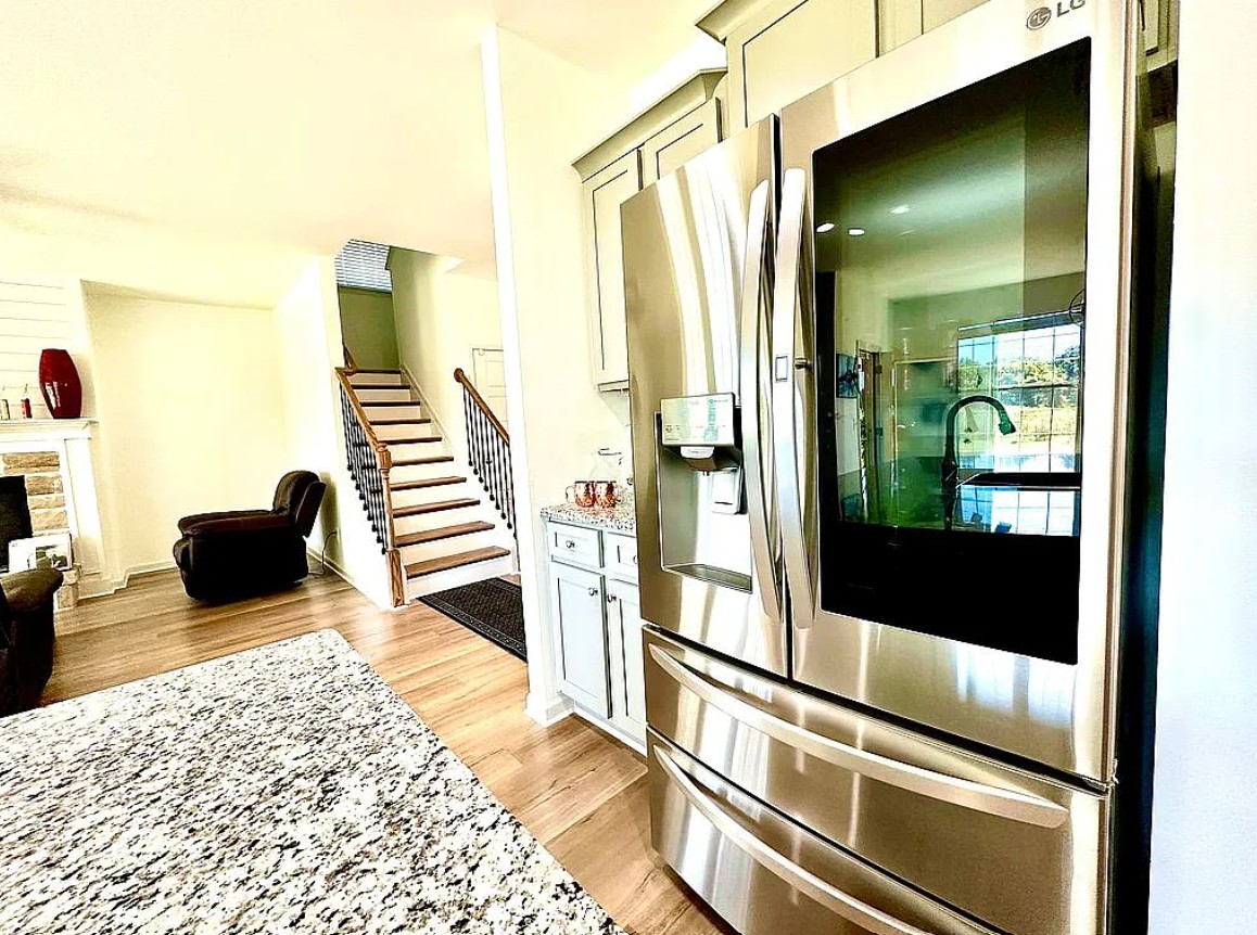 The gourmet kitchen is a chef’s dream with granite countertops, soft-close cabinetry, and a large walk in pantry for added convenience.