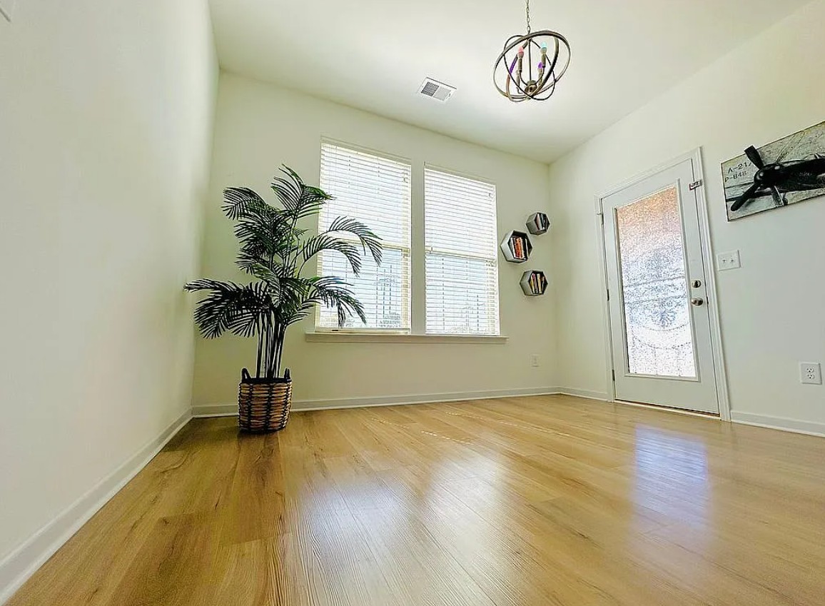 Luxury vinyl plank and plush carpet flooring provide both style and comfort throughout.
