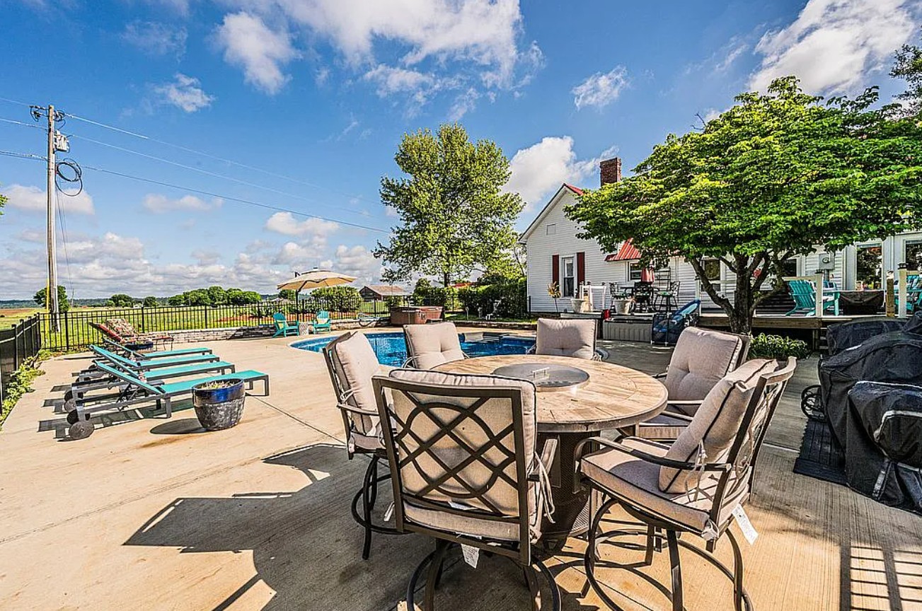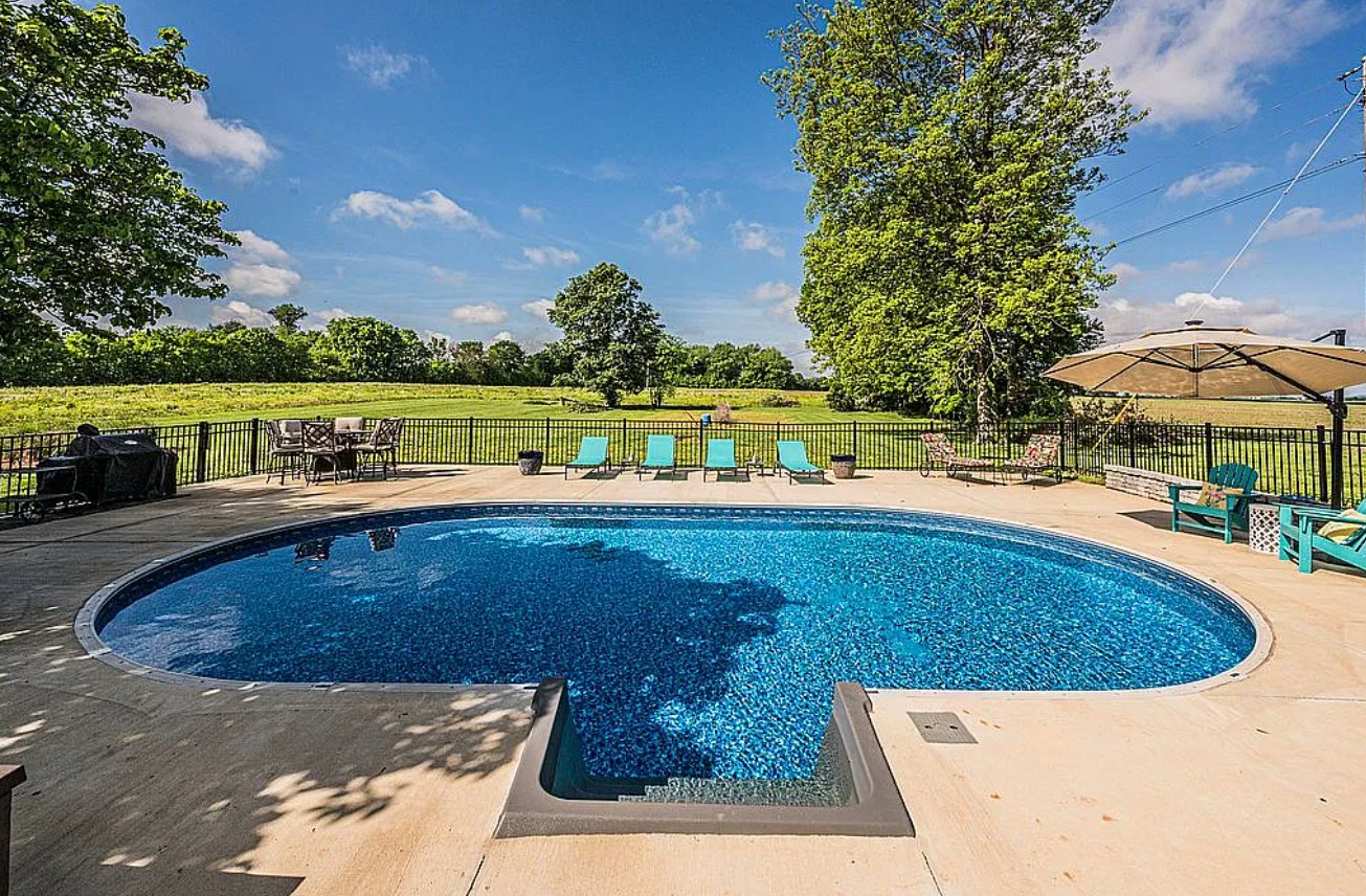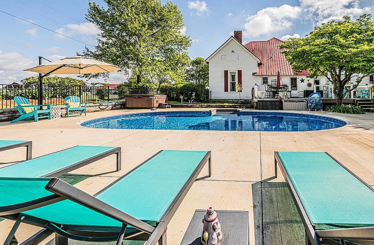 The Trex deck, added in 2022, overlooks a 34’ x 18’ in ground pool (installed 2023) surrounded by a large concrete patio perfect for summer relaxation and entertaining.