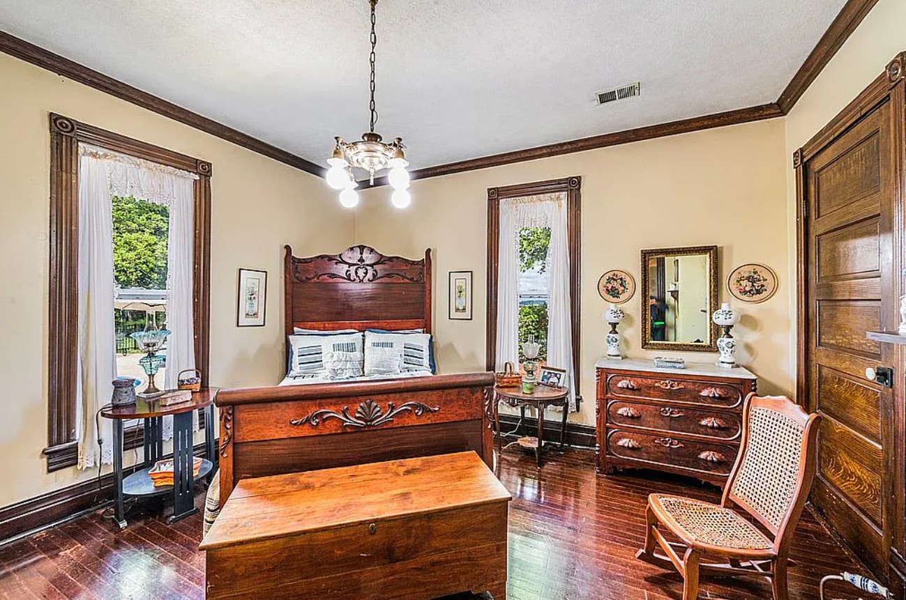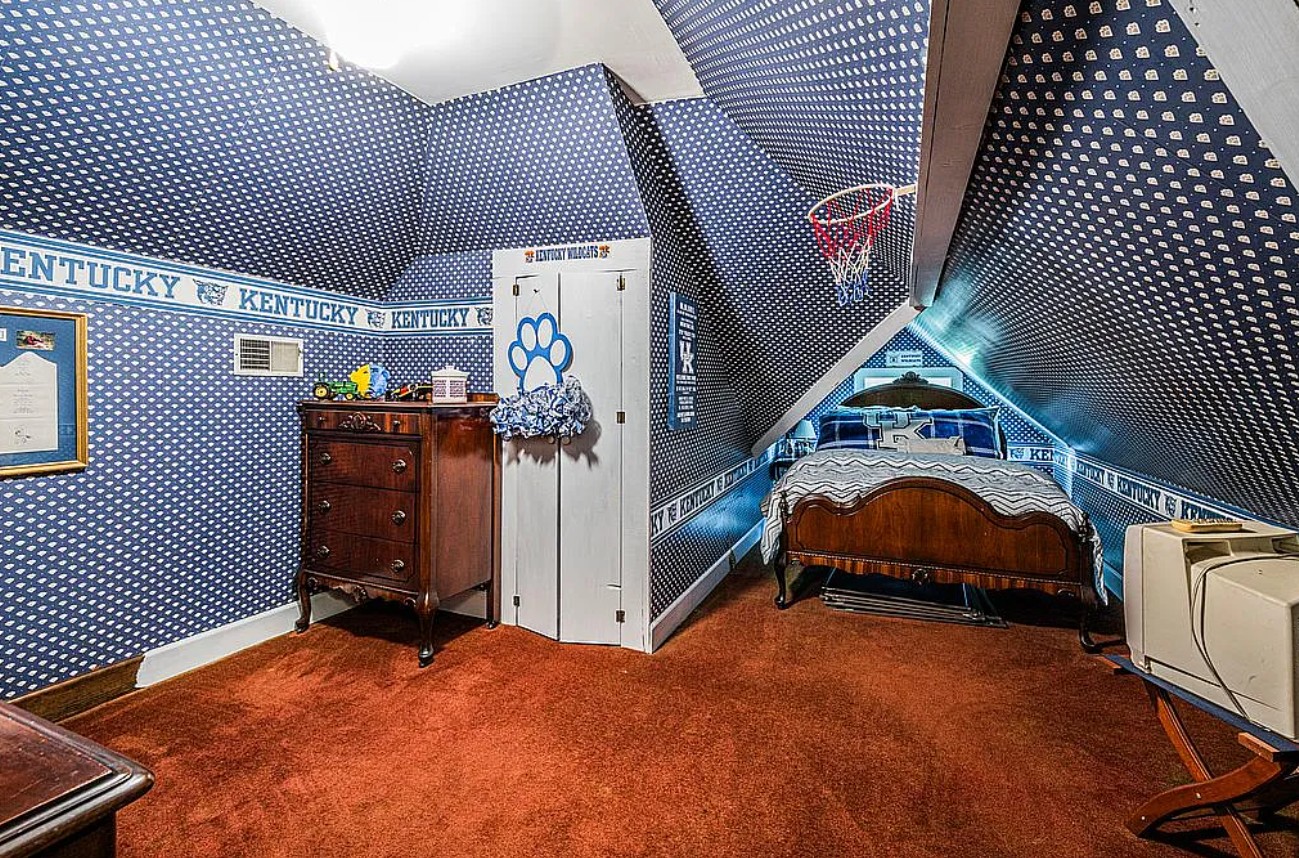Upstairs, two spacious bedrooms include walk-in attic storage for added convenience.