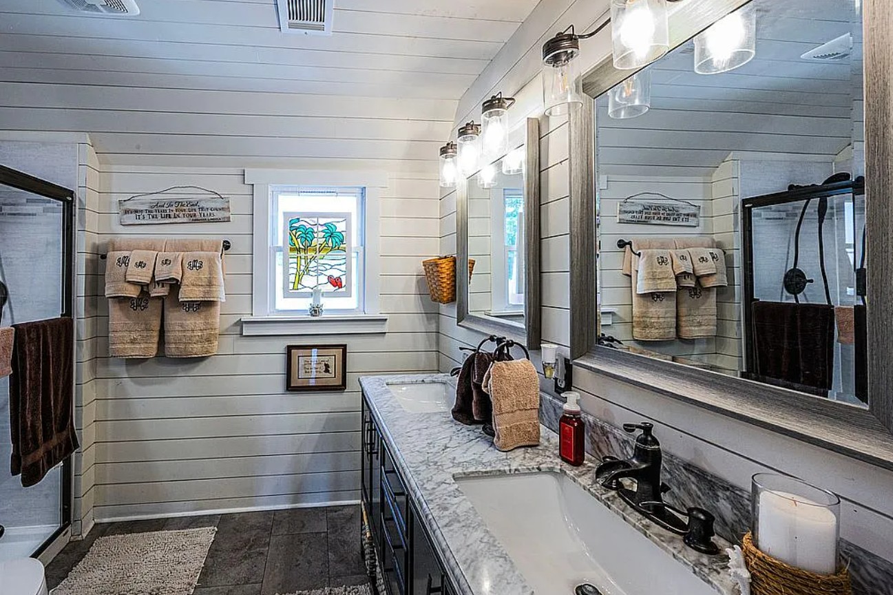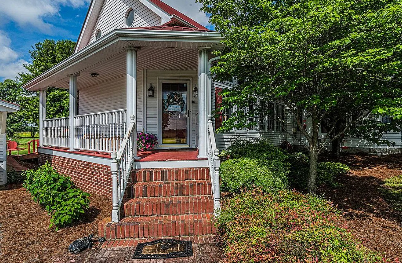 Outside, enjoy multiple outdoor living spaces with a large covered front porch, a covered side porch, and a ramped entrance for easy access.