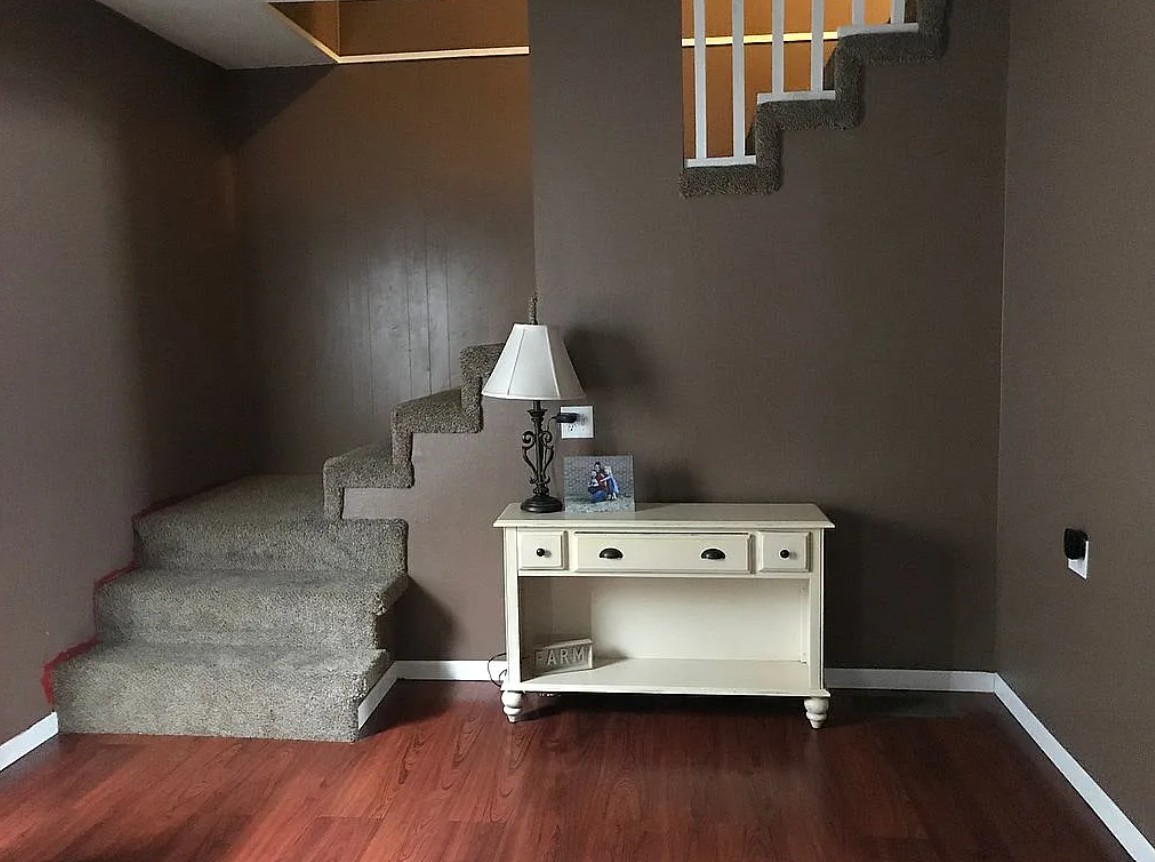 The main floor includes two bedrooms, while the upper level offers two more bedrooms with a cozy landing area between them perfect for a kids’ play space.