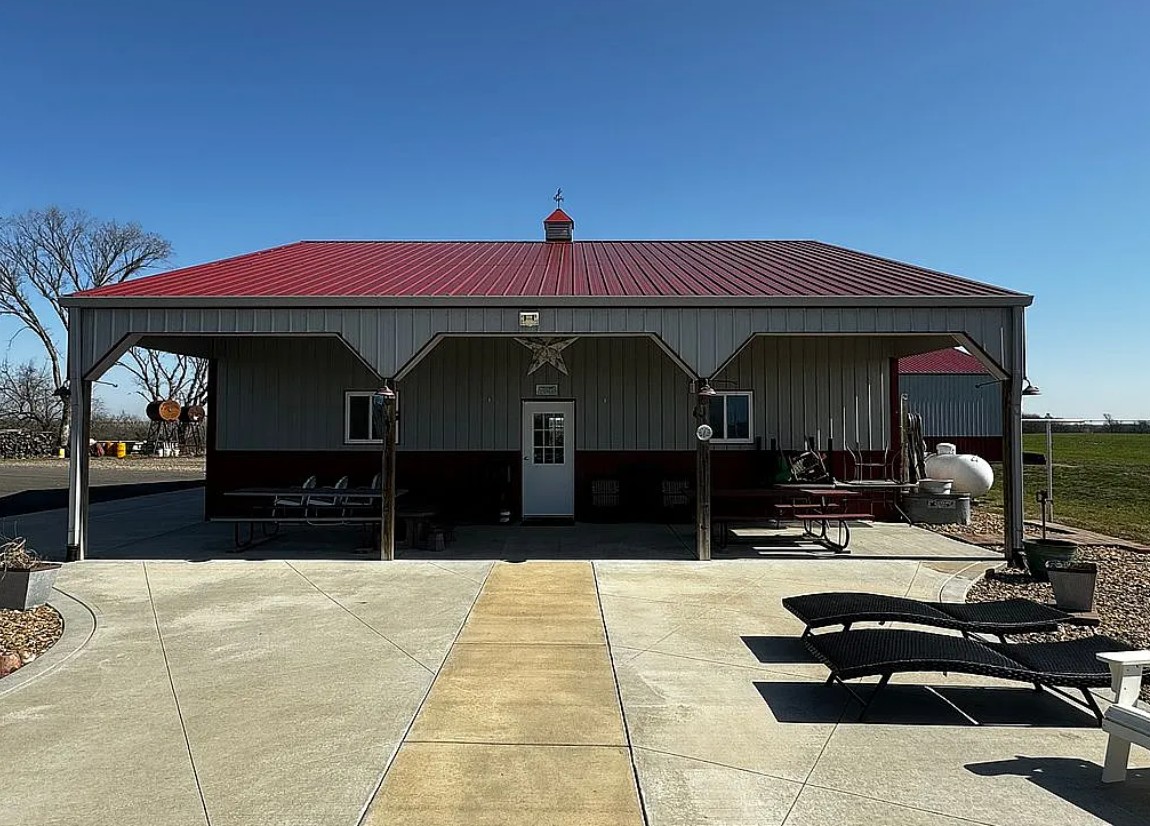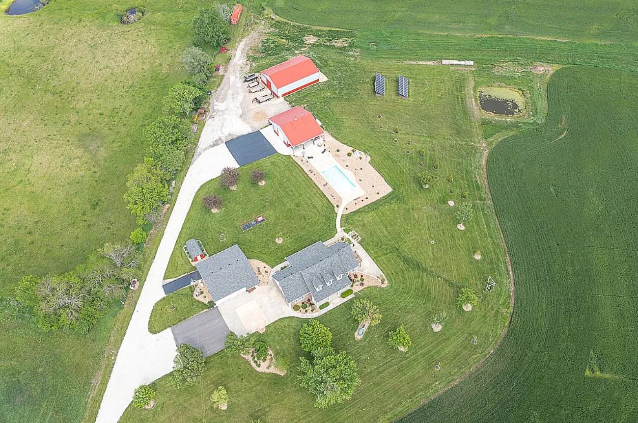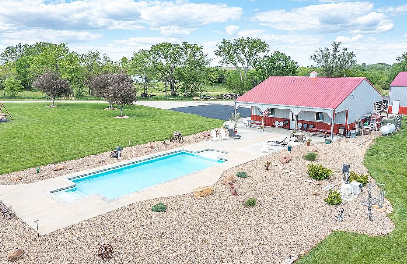 The property includes a 30×40 heated garage, a 30×40 finished barn with a bathroom designed for gatherings, a 30×40 heated in ground pool, and a 40×60 equipment storage building all fully wired with electrical service.