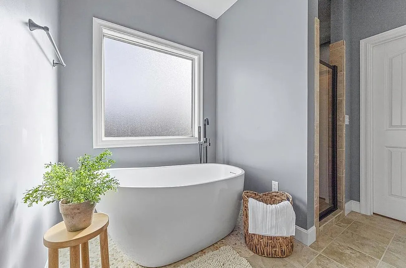 The main-floor primary suite is a private retreat complete with a new soaker tub, tiled walk-in shower, and spacious walk in closet.
