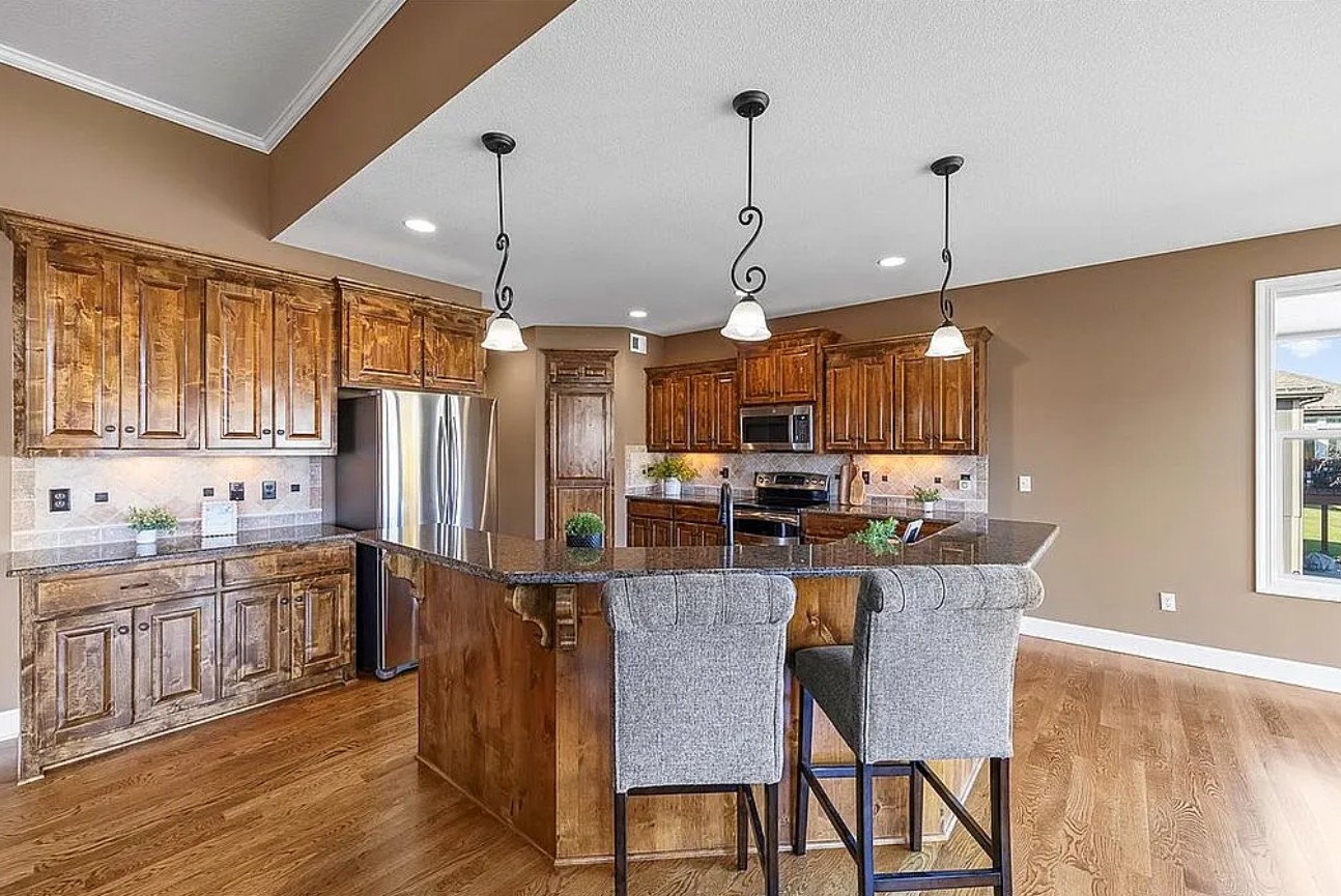The finished walkout basement provides a large rec room and abundant storage, while practical features include a 3 car garage, new water heater (2023), and water softener.