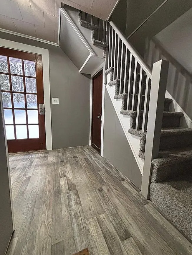 The home includes a first-floor laundry room, a spacious mudroom/storage area, and fully remodeled bathrooms with brand-new finishes that create a clean, spa-like atmosphere.