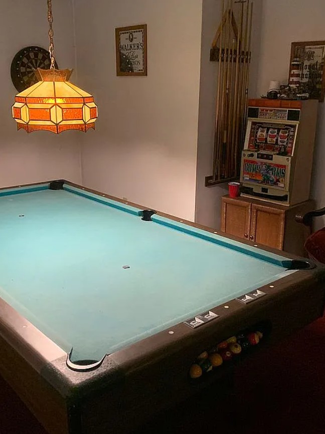 The finished basement includes an additional bedroom, full bathroom, laundry room, and a dedicated hot tub room, providing flexible living and relaxation space.