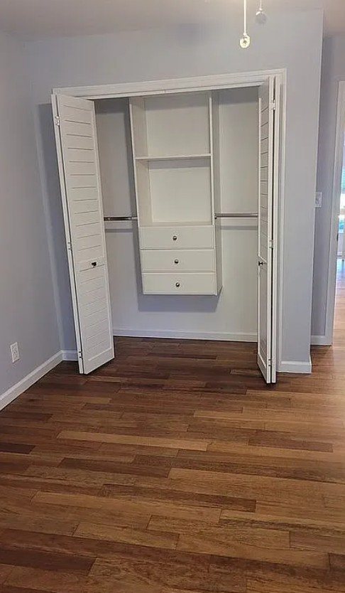 The oversized bedroom offers exceptional storage with two large closets, including a custom closet system added in 2022.