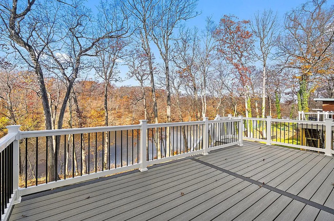Elevated outdoor spaces include a Trex deck on the main level and a paver patio on the lower level, both overlooking the lake and perfect for relaxing or hosting gatherings.