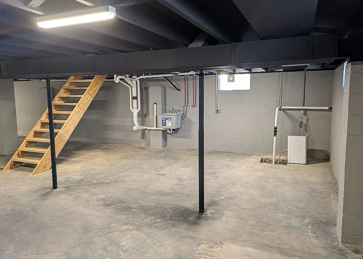 Inside, the home boasts brand-new Samsung stainless steel kitchen appliances including an electric stove, microwave, refrigerator, and dishwasher, new kitchen cabinets with laminate countertops, a walk-in shower, solid interior doors, premium Poplar trim, updated lighting and ceiling fans throughout, and glass block basement windows for added natural light.