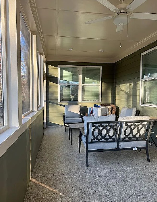 Recent upgrades include fresh interior and exterior paint, an epoxy-coated garage floor, and epoxy finishes on both the front porch and back porch.