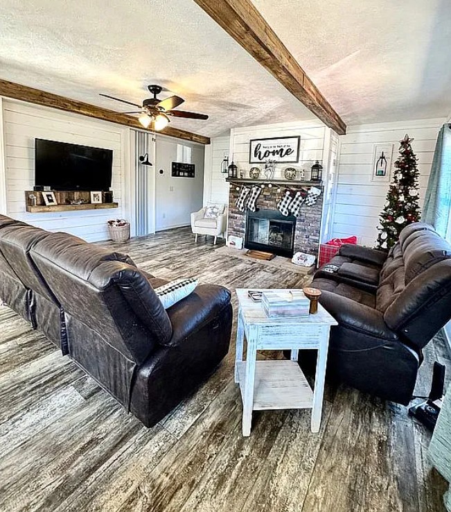 The home is equipped with central heat and air and a cozy wood-burning fireplace for year-round comfort.