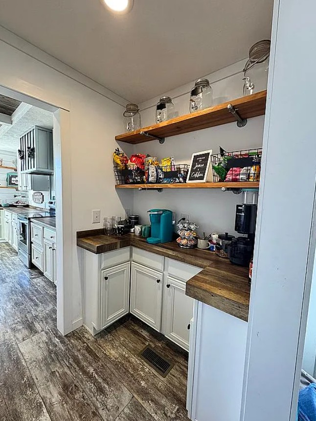 This 2022 Buccaneer home features 2,112 square feet of living space with a large open kitchen, abundant storage, a large island for meal prep and entertaining, and a butler’s pantry with coffee and drink bar.