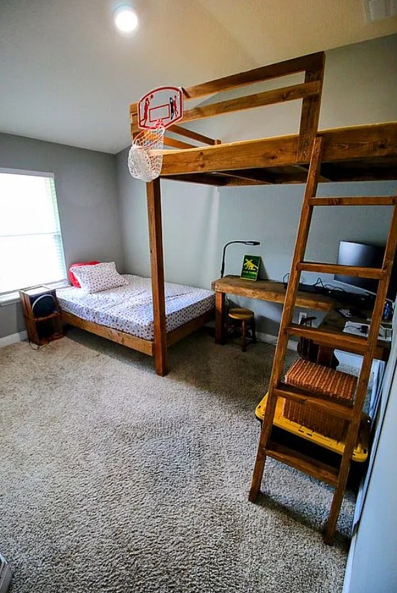 Surrounded by lush landscaping, the home features an open floor plan with four generously sized bedrooms providing ample space for sleep, study, and storage.