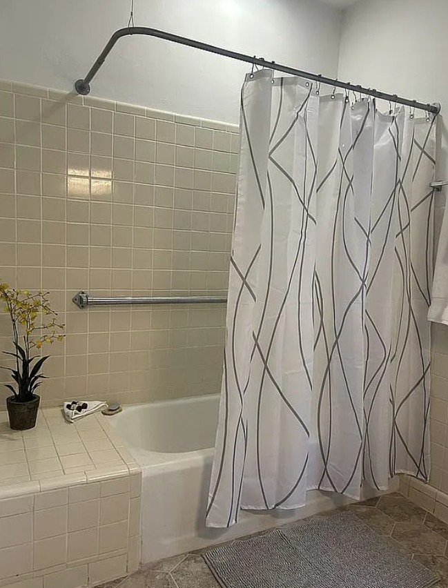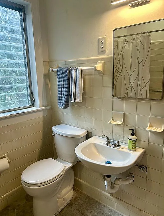 The newly tiled bathroom adds contemporary style, while the covered screened porch provides the perfect space to relax and enjoy the outdoors.