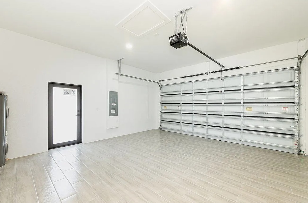 Interior features include large-format 32” ceramic tile flooring throughout, creating a clean, upscale look with low maintenance.