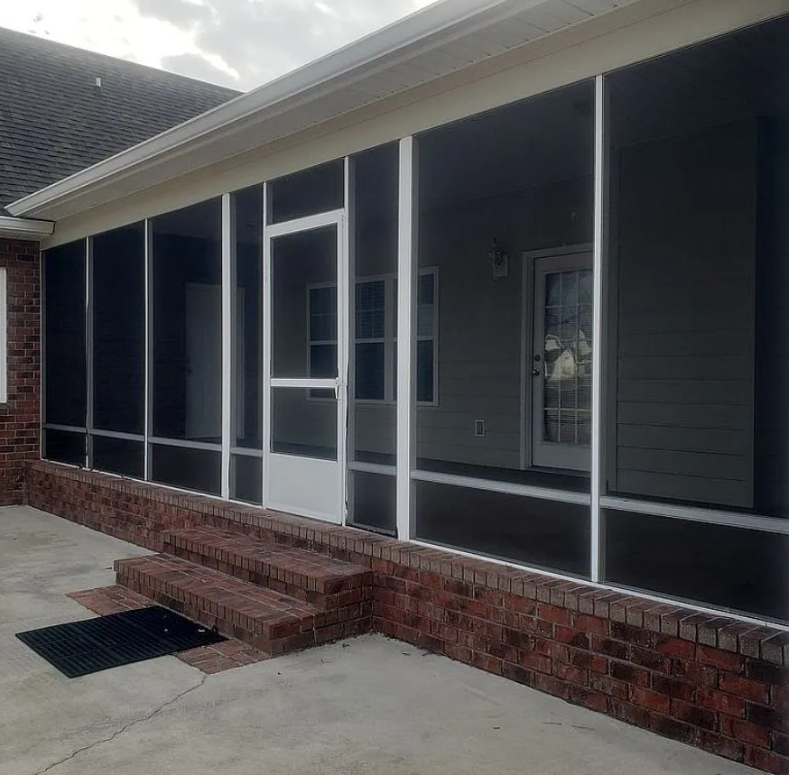 Outdoor living is enhanced by a large screened-in back porch and patio, perfect for relaxing or entertaining.