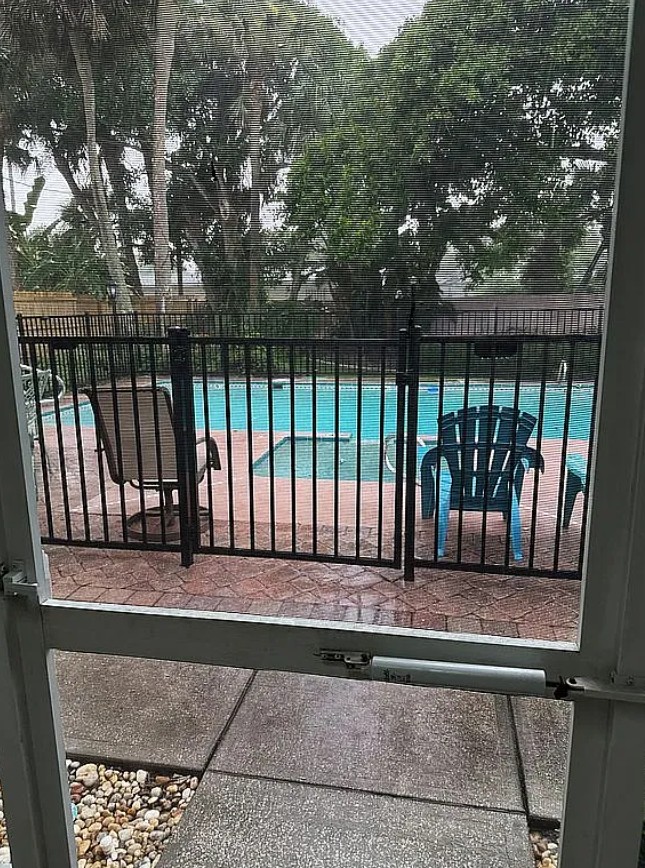 Enjoy the community amenities, including a pool and a charming backyard view.