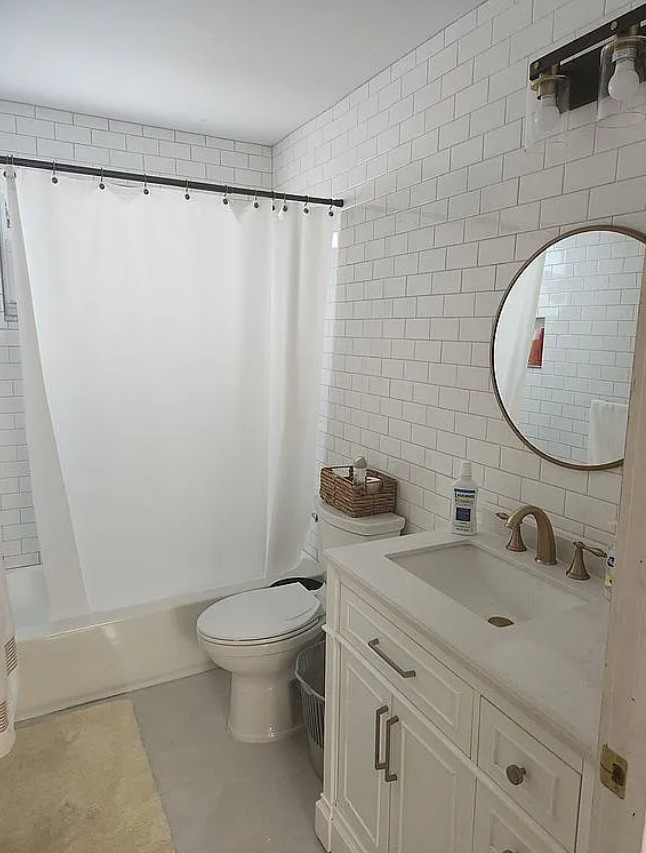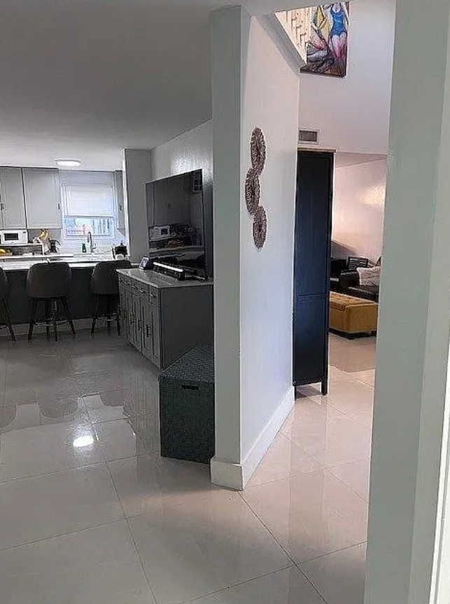 This well-maintained property features tile and laminate flooring throughout, plus an updated kitchen and renovated bathrooms for modern comfort and style.