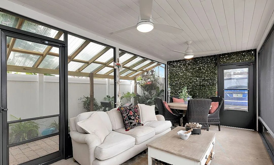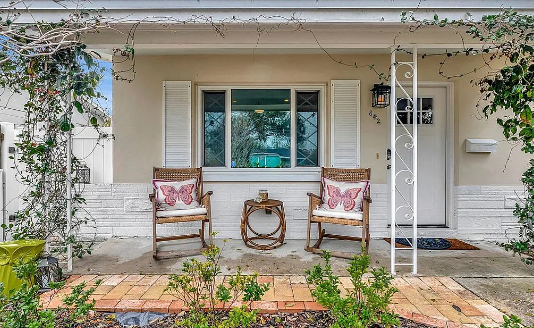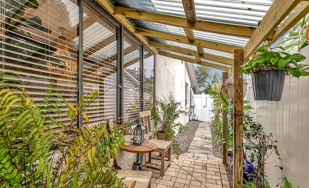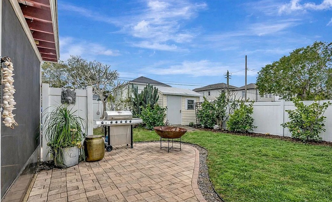 The fully fenced front and backyard are pet-friendly and beautifully landscaped with paver garden areas, butterfly host plants including milkweed and Dutchman’s pipe, plus a shaded growing area for tropical plants.