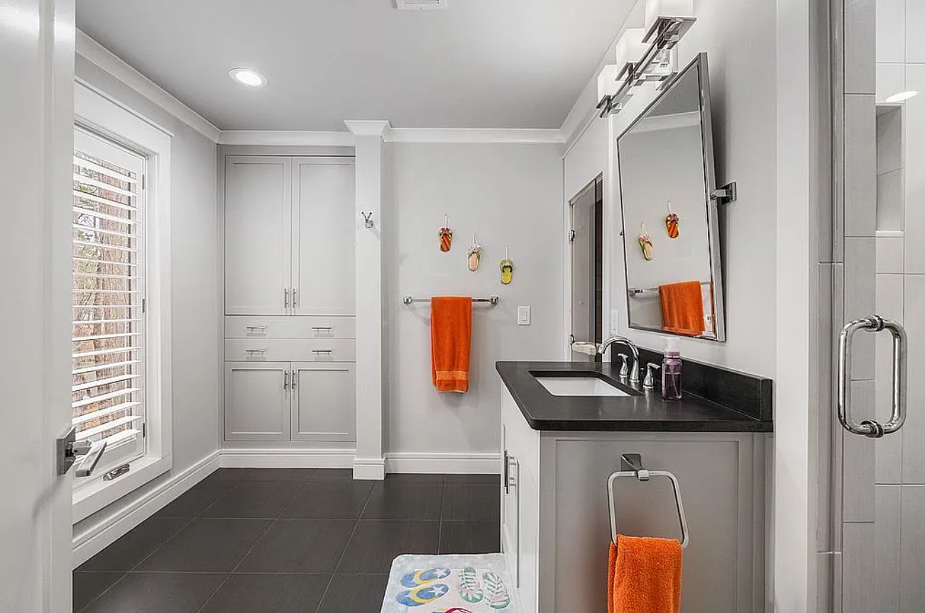 Four additional bedrooms each feature beautifully updated bathrooms with custom cabinetry and rainfall shower heads, while select baths include steam shower and sauna features for a spa-like experience.