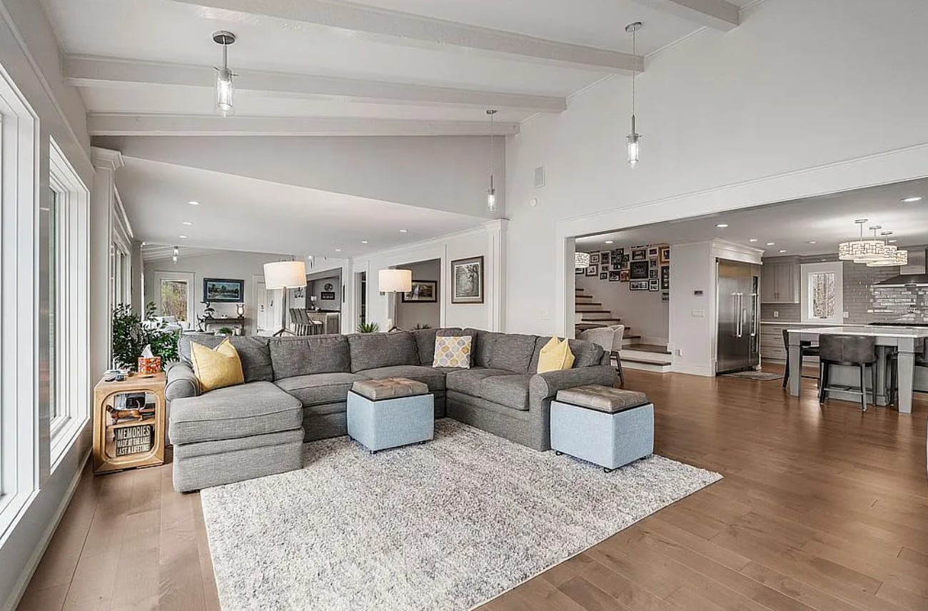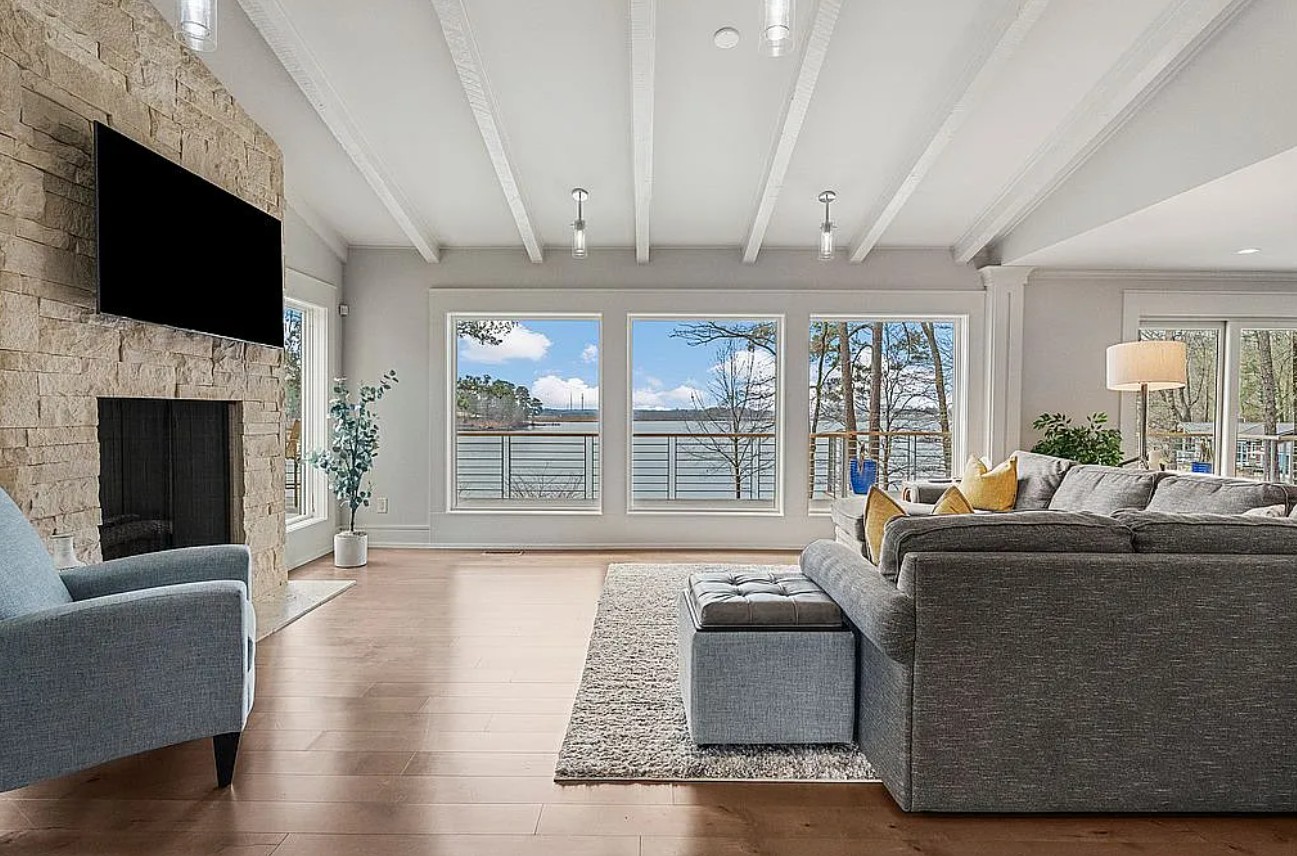 The property also includes a brand-new rebuilt two-story boat dock with durable composite decking and an oversized wrap-around wharf, offering easy lake access and plenty of space for boating and relaxing on the water.
