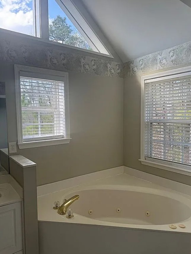 Upstairs, the primary suite offers a relaxing retreat with a jetted tub, separate shower, and ample space.