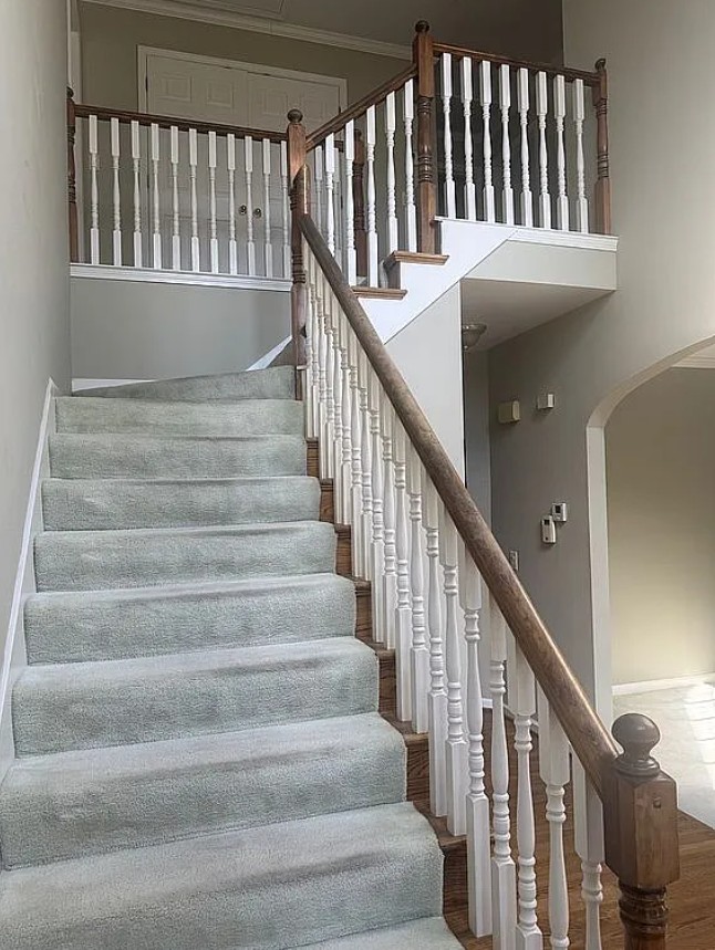 The grand entryway features soaring ceilings and an elegant staircase that adds a touch of sophistication.