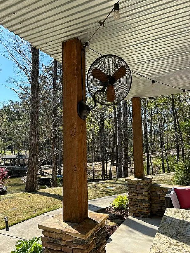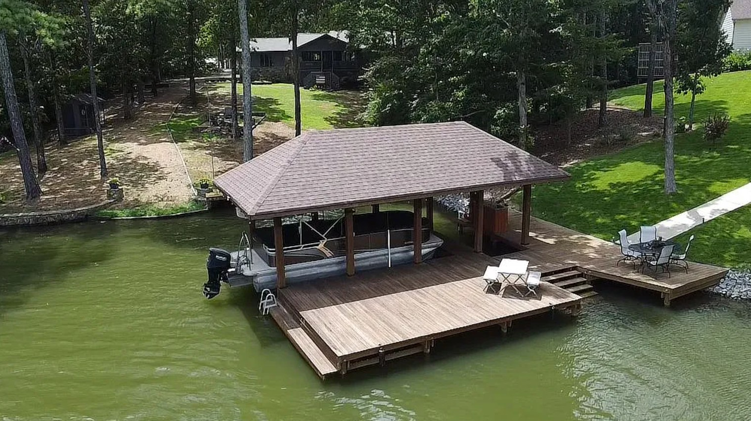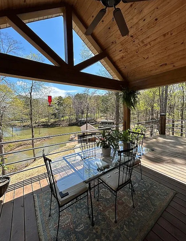 Step outside to a covered deck overlooking the lake, perfect for relaxing or entertaining.