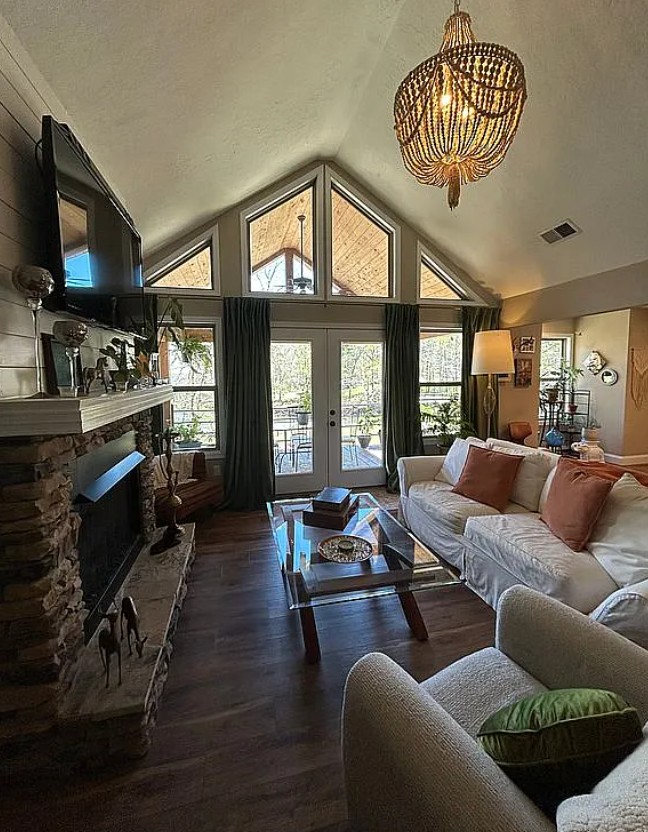 Stunning 4 bedroom, 3+ bath lakefront home for sale by owner in Centre, AL, nestled on 1+ acres along Weiss Lake, offers 2,688 sq ft of beautifully designed living space built in 2021.
